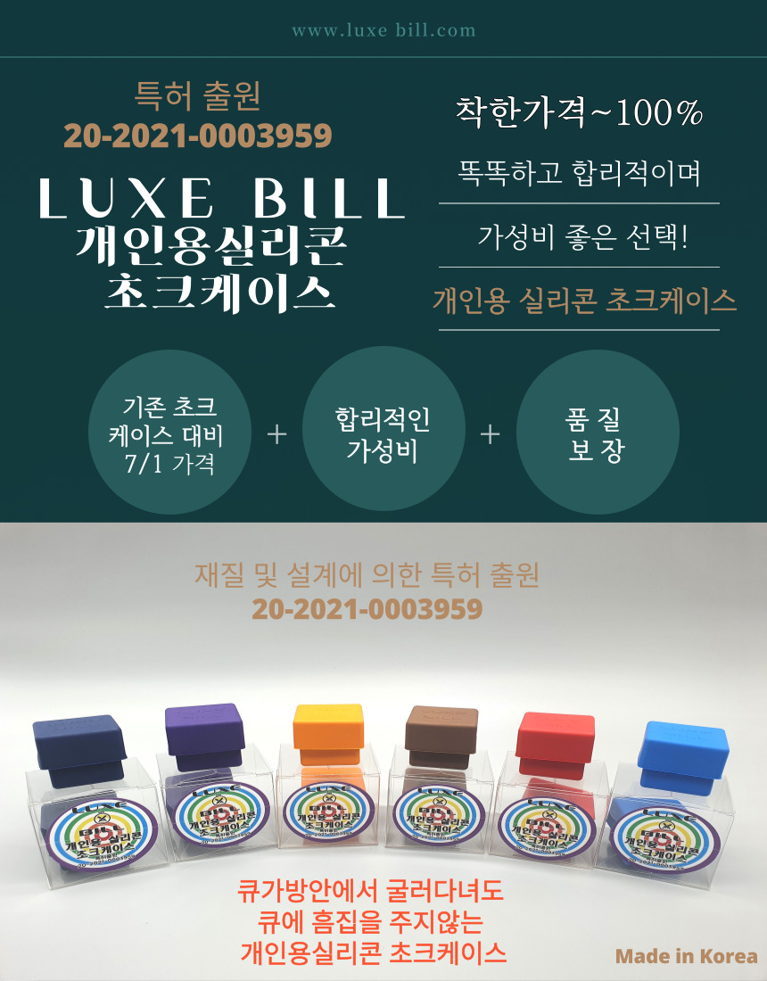 착한가격~100% 똑똑하며 합리적이며 가성비 좋은 선택! 기존 초크 케이스 대비 1/7 가격 합리적인 가성비 품질보장. 큐가방안에서 굴러다녀도 큐에는 흠집을 주지않는 개인용 실리콘 초크케이스!!