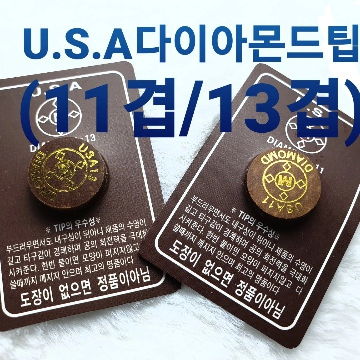 <U.S.A다이아몬드 11겹팁 /13겹팁> - 지 름 : 14mm - 두 께 : 8mm내외 - 겹 수 : 11겹 /13겹 - 강 도 : M - 탄성도 : 강 - 특 징 : 타격시 매력적인 탄성으로 타구감(공회전력) 극대화 월등한 내구성 |