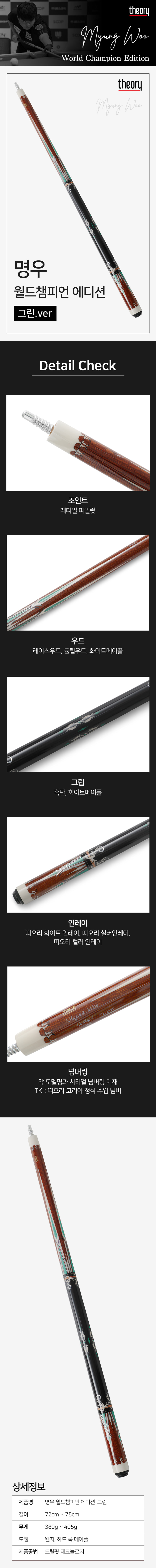[KNB 당구큐] 띠오리 명우 월드챔피언 에디션 그린 / theory MyungWoo World Champion Edition